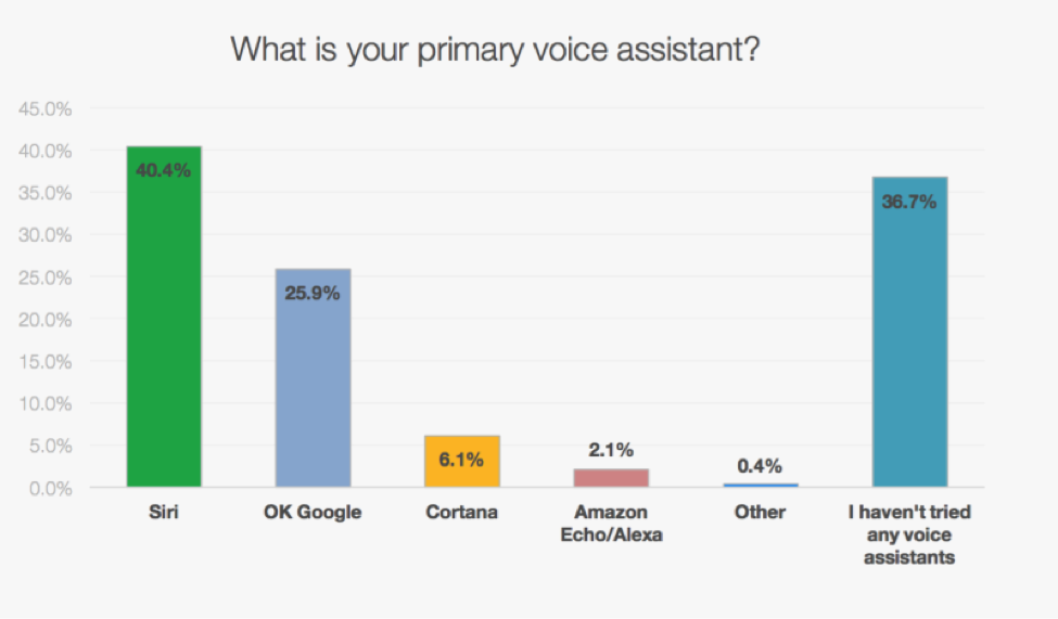 According to a recent survey, Siri is the most popular voice assistant right now. It is being closely followed by Google. However, Cortana, still has a long way to go.